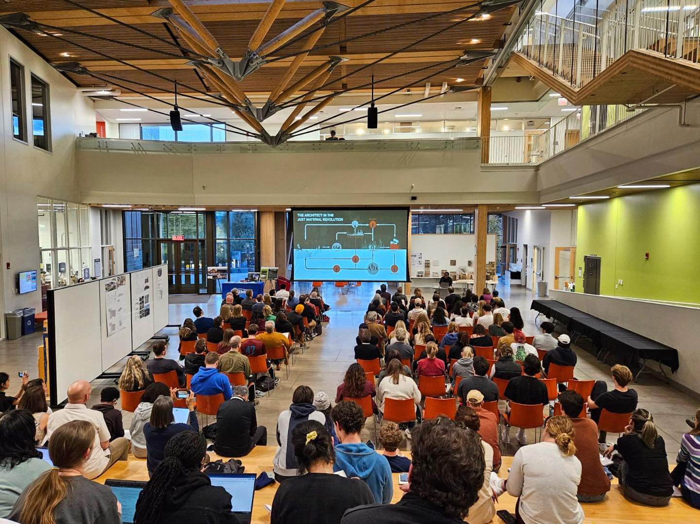 R. Buckminster Fuller famously re-conceptualized the idea of material economy by asking “How much does your building weigh?” Nearly one hundred years later, our notion of material sustainability and the “weight” of building materials has taken on a more expansive meaning. Our current understanding of materiality suggests serious challenges related to the sustainability, resiliency, and human health impacts of our architectural materials. According to the United Nations Environment Programme’s Global Alliance of Buildings and Construction (Global ABC) nearly 50% of the carbon footprint over the next decade for today’s projects is the embodied carbon from construction. To meet the climate commitments of the Paris Agreement (COP21), it is these immediate emissions that are most critical. The Living Building Challenge’s Red List has raised awareness of the thousands of unregulated toxic chemicals present in our industrial economy, and hiding in our buildings, from our water pipes to our furnishings.
